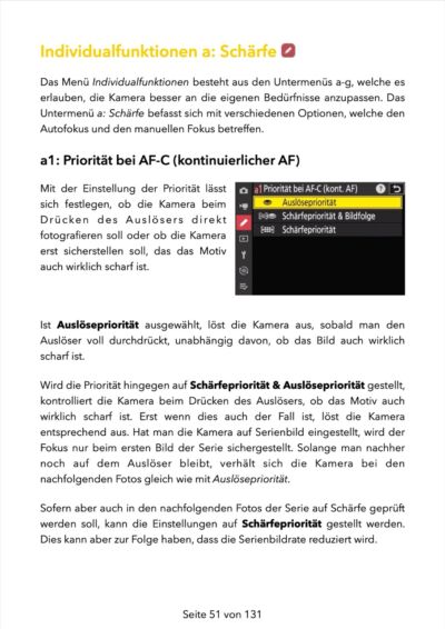 Auf deine Kamera abgestimmt: Gewisse Einstellungen unterscheiden sich von einem Kameramodell zum anderen. Wir gehen im E-Book auf die Besonderheiten verschiedener Modelle ein und schreiben klar, welche Funktionen es bei bestimmten Modellen nicht gibt.