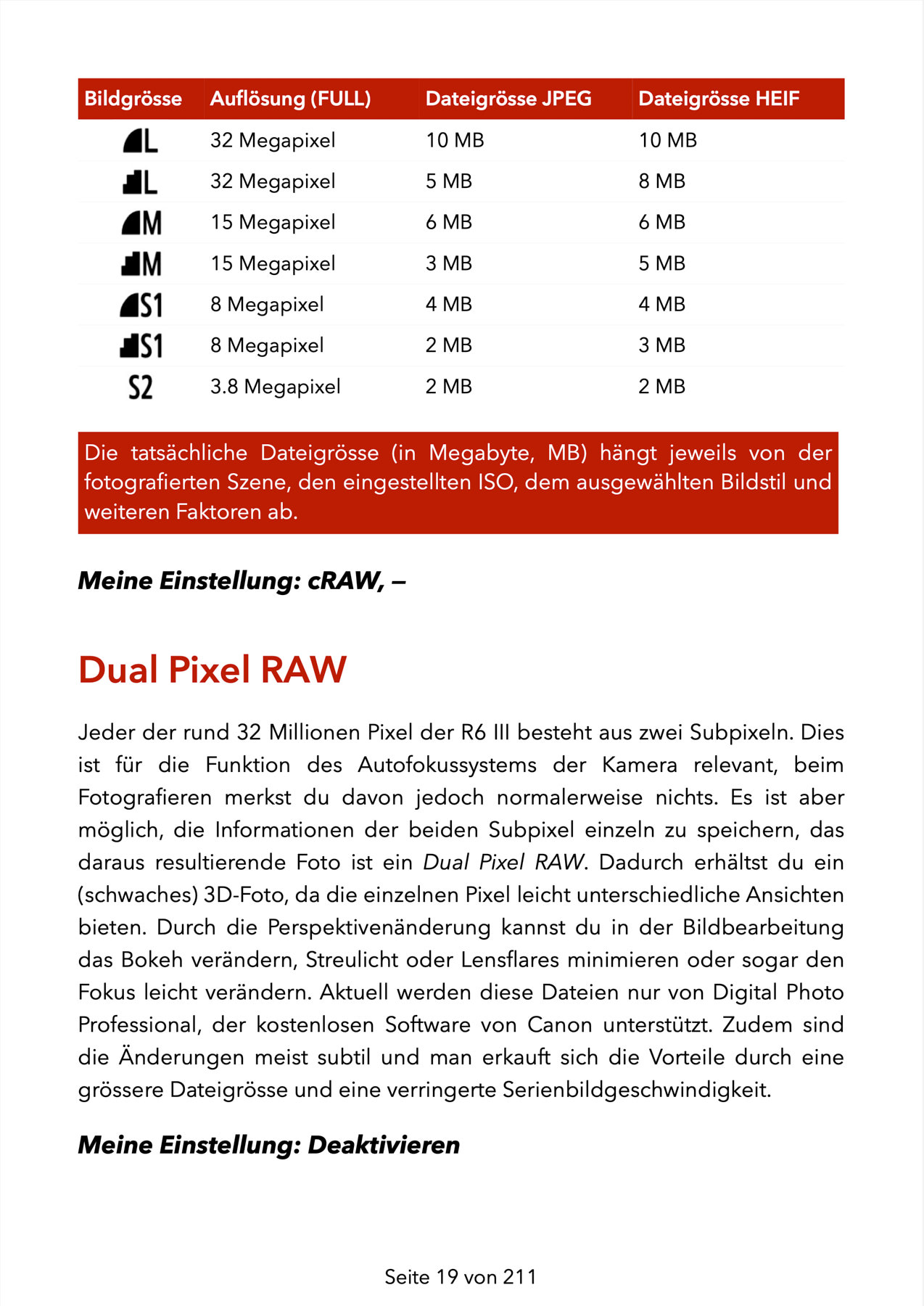Auf deine Kamera abgestimmt: Das E-Book ist zu 100% auf die Canon R6 III abgestimmt.