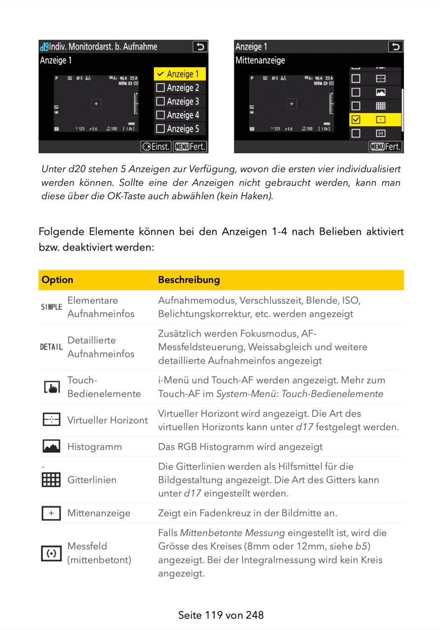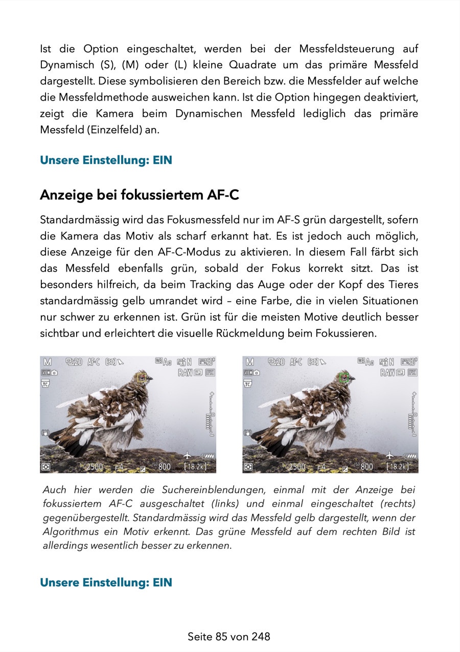 – Erklärung aller für die Naturfotografie relevanter Menüpunkte