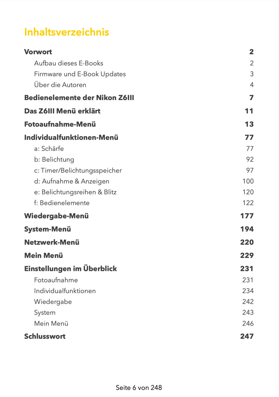 Auf deine Kamera abgestimmt: Das E-Book ist zu 100% auf die Nikon Z6 III abgestimmt.