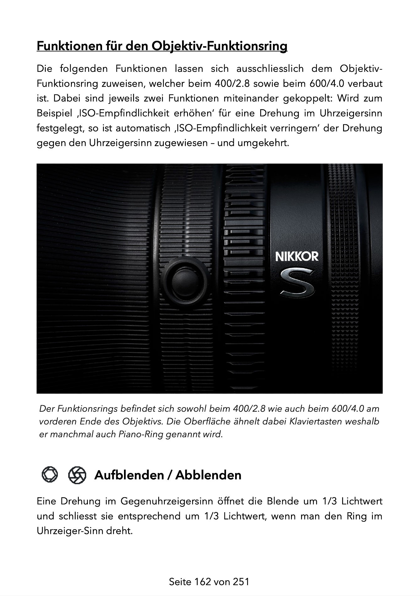 Bleibe Up to Date:  Durch Firmware-Updates können neue Funktionen hinzugefügt werden oder bestehende abgeändert werden. Im Juni 2025 hat Nikon zum Beispiel einen flexiblen Fokusbegrenzer ins Menü der Z8 integriert. Bei relevanten Änderungen werden wir unser bestes geben, dass E-Book zeitnah zu aktualisieren. Du erhältst dabei alle zukünftigen Updates kostenlos!